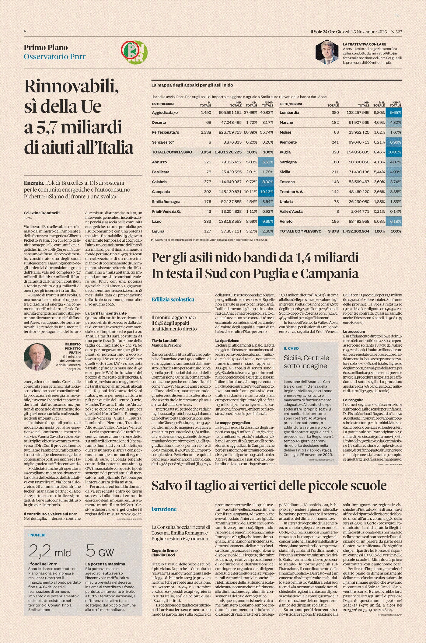 Report di Anac sugli appalti Pnrr per gli asili. Il Sole 24 Ore gli dedica un'inchiesta di approfondimento