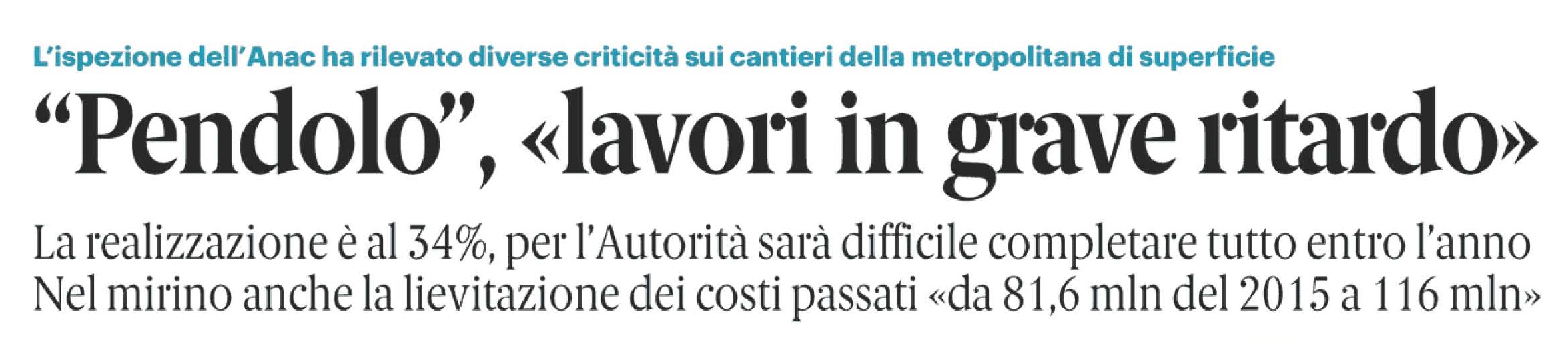 "Pendolo, lavori in grave ritardo"