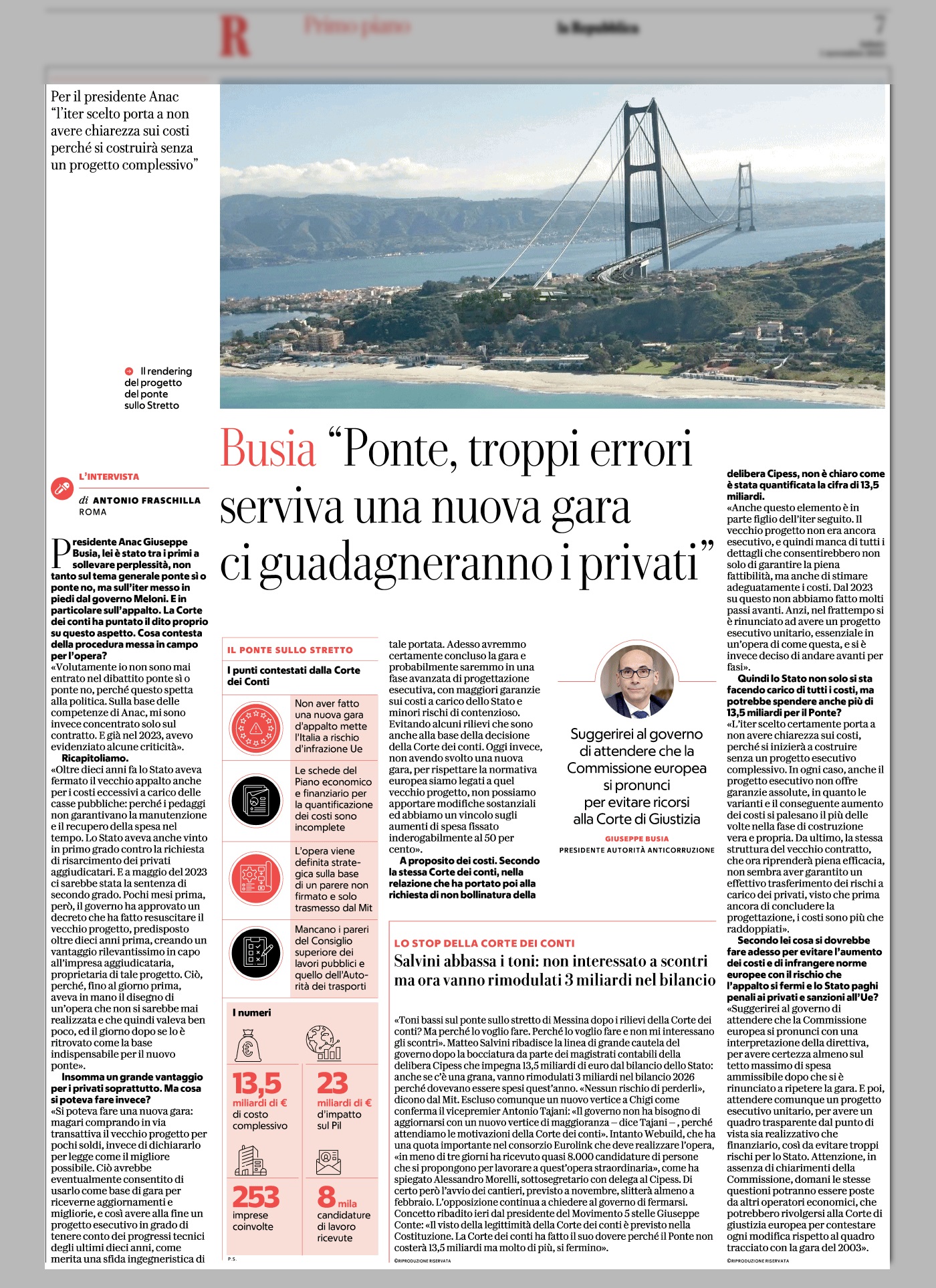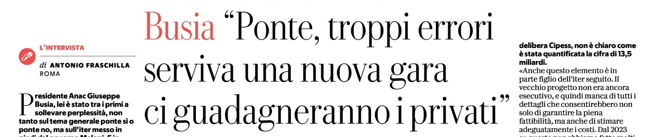 Intervista - Busia: "Ponte, troppi errori serviva una nuova gara ci guadagneranno i privati" - La Repubblica, 1 novembre 2025