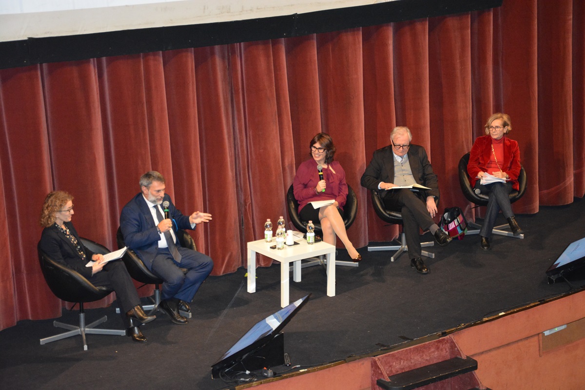 - Tavola rotonda "Programmare: il nuovo Piano Nazionale Anticorruzione triennale per promuovere il valore pubblico e gestire i rischi corruttivi". Sul palco, da sinistra a destra, Maria Rosaria Di Cecca, Responsabile Dipartimento Affari generali e istituzioni di Anci, Francesco Radicetti, Capo Ufficio legislativo del Ministro per la Pubblica Amministrazione, Consuelo del Balzo, Componente Consiglio Anac, Giovanni Tartaglia Polcini, Coordinatore per le attività internazionali di contrasto alla corruzione Dgaaao–Maeci, Valentina Lostorto, Coordinatrice del Dipartimento Regole e funzionamento delle pubbliche amministrazioni della Sna -