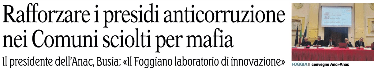 Se ne è discusso ieri a Foggia nel corso del convegno promosso dall'Anci e dall'Anac intitolato "La forza dell'in tegrità"