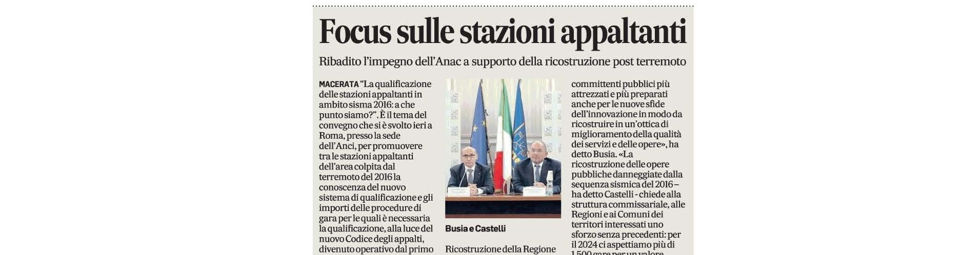 Il Corriere Adriatico ha dato ampia evidenza al convegno svoltosi a Roma il 9 novembre 2023 sulla qualificazione delle stazioni appaltanti in ambito sisma 2016. “Focus sulle stazioni appaltanti”, il titolo dell’articolo.