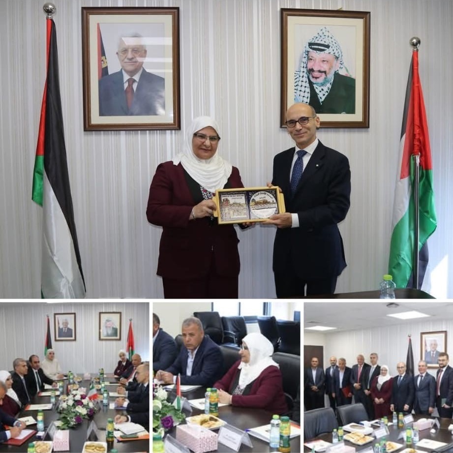 The Italian delegation’s meeting with the President of the Palestinian Court of Auditors (State Audit and Administrative Control Bureau), Amal Faraj, was also significant.