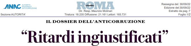 Articoli di Repubblica Roma e Il Tempo sulla riqualificazione degli ex mercati generali di Roma. Sul progetto, che sta per compiere venti anni, l'Anac ha concluso un'istruttoria rilevando una serie di irregolarità e violazioni. E' stato realizzato solo un quarto dell'opera e il cantiere è fermo da sei anni.